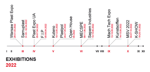 We have gathered all European events in the plastics processing industry in which our distributors will take part. We invite you to read the list below and enter the most important events in your calendar!