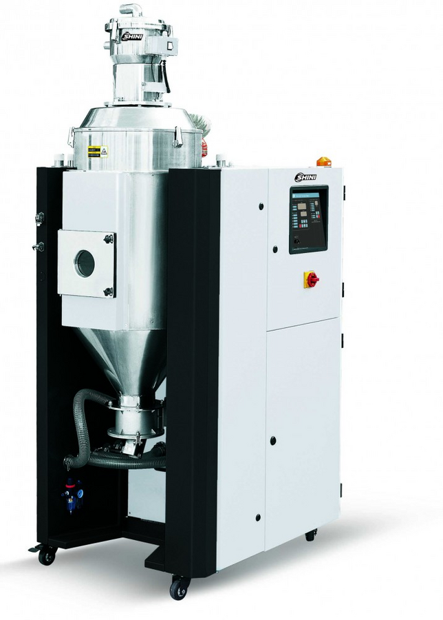 Shini "optical" compact dryers combine the function of dehumidifying, drying and two-stage conveying into one single unit, specified for the production of "optical class" products, such as lenses, LCD backlight panel, compact discs etc. They feature honeycomb rotor for dehumidifying, ensuring continuous and constant low dew-point. Under ideal conditions, it can provide lower than -40â„ dew-point dehumidified air.