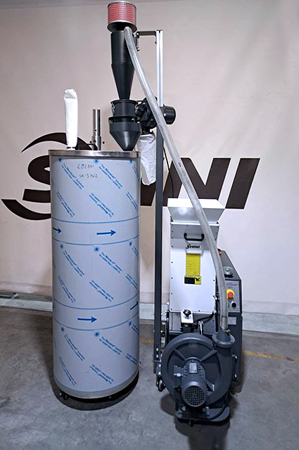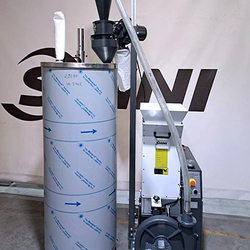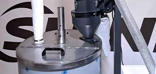 SG series 16N with BC and DS combined with a material tank. Stainless steel tank on wheels with a pipe for material collection. This design was created to work with a central feeding system. If you need another collection or something similar, write to us.